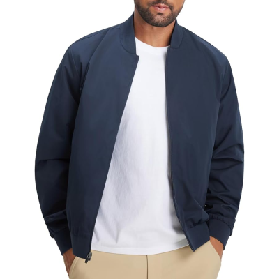 Mens Bomber Jacket Lightweight Casual Golf Windbreaker Spring Fall Full Zip Up Coat Jackets for Men with 4 Pockets