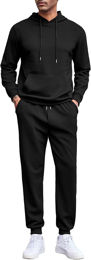 Men's Tracksuits 2 Pieces Waffle Hoodies Sweatsuit Sets Sports Jogging Suit Set