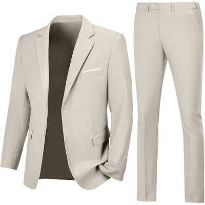 Mens Slim Fit 2 Piece Suit Two Button Notched Lapel Solid Suit Jacket Pants Set