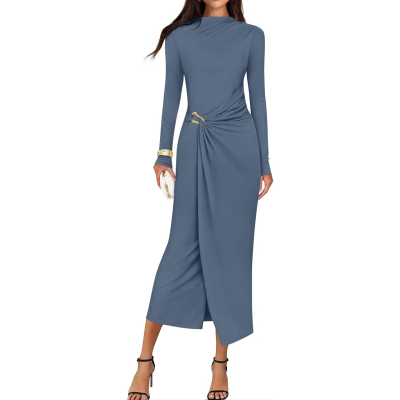 Women's 2026 Spring Long Sleeve Bodycon Dress Mock Neck Long Midi Dresses