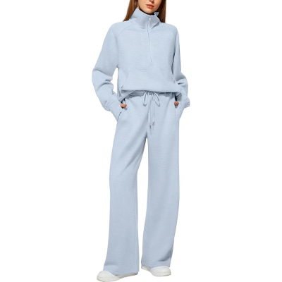 Women's 2 Piece Outfits Lounge Set Oversized Half Zip Sweatshirt Wide Leg Sweatpant Set Sweatsuit Tracksuit